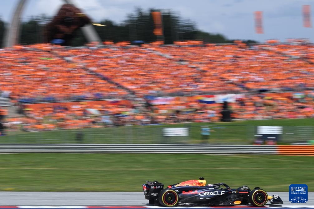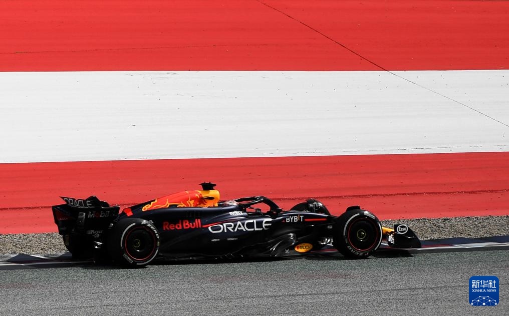 6月30日,红牛车队荷兰车手维斯塔潘驾驶赛车在比赛中。他最终获得第五名。新华社记者 贺灿铃 摄