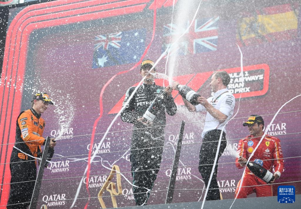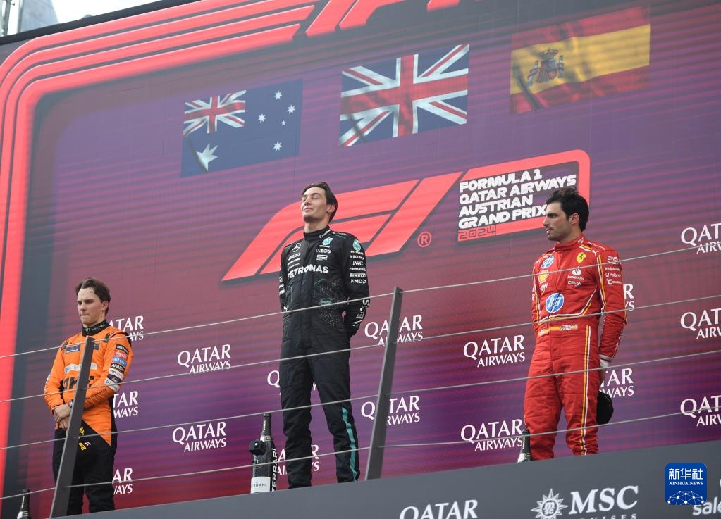 当日,2024赛季世界一级方程式赛车锦标赛(F1)奥地利大奖赛正赛在奥地利施皮尔贝格红牛赛道举行。梅赛德斯车队英国车手拉塞尔夺冠,迈凯轮车队澳大利亚车手皮亚斯特里、法拉利车队西班牙车手塞恩斯分获亚军、季军。