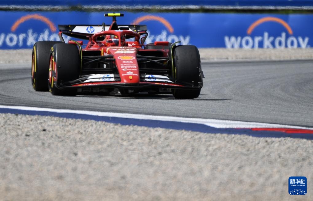 6月30日,法拉利车队西班牙车手塞恩斯驾驶赛车在比赛中。新华社记者 贺灿铃 摄
