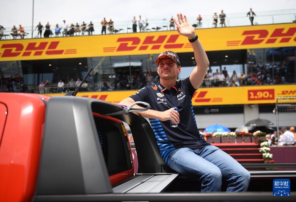 6月30日,红牛车队荷兰车手维斯塔潘参加赛前车手巡游仪式。新华社记者 贺灿铃 摄