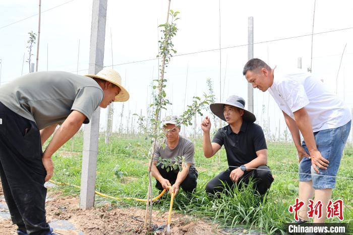 “最近高温天气频繁出现,相关部门组织了农技人员前来指导,目前我已完成园区全部灌溉工作,目前长势良好,我对树的成活率还比较满意。”王峰军说。