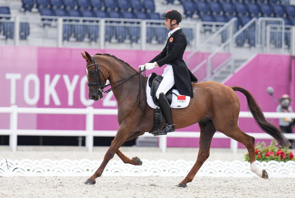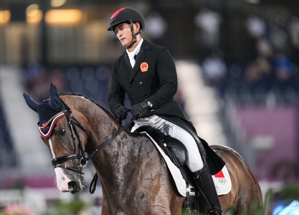 2021年7月30日,中国选手孙华东在东京奥运会马术三项赛盛装舞步首日比赛中。新华社记者 朱峥 摄