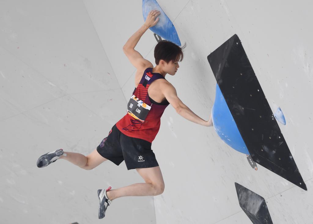 6月23日,中国选手骆知鹭在巴黎奥运会资格系列赛布达佩斯站攀岩女子两项全能决赛中。新华社记者 贺灿铃 摄