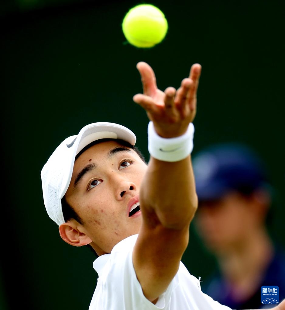 7月1日,商竣程在比赛中发球。新华社记者 李颖 摄