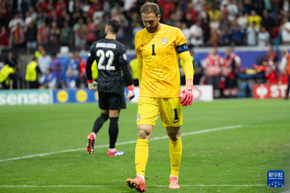 当日,在德国法兰克福进行的2024欧洲足球锦标赛八分之一决赛中,葡萄牙队和斯洛文尼亚队在常规时间和加时赛战成0比0,最终在点球大战中,葡萄牙队3比0战胜斯洛文尼亚队,晋级八强。