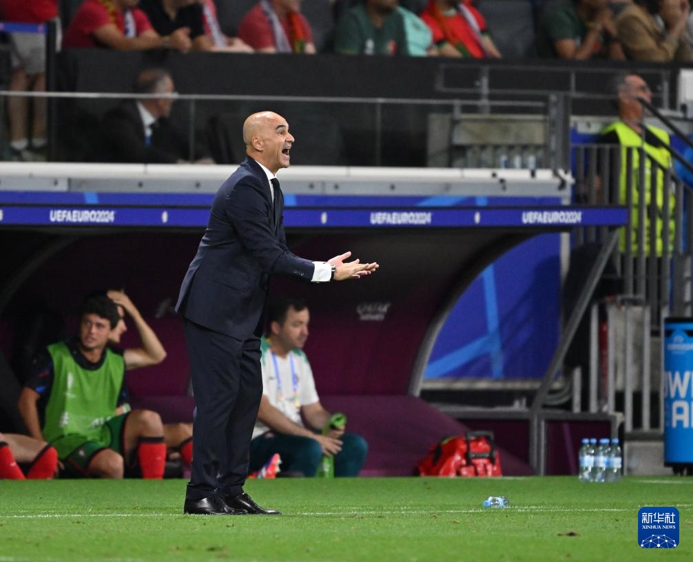 7月1日,葡萄牙队主教练罗伯托·马丁内斯在场边指挥。新华社记者 任鹏飞 摄