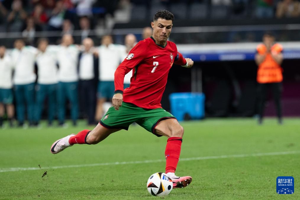 7月1日,葡萄牙队球员克·罗纳尔多在比赛中主罚点球。新华社记者 肖艺九 摄