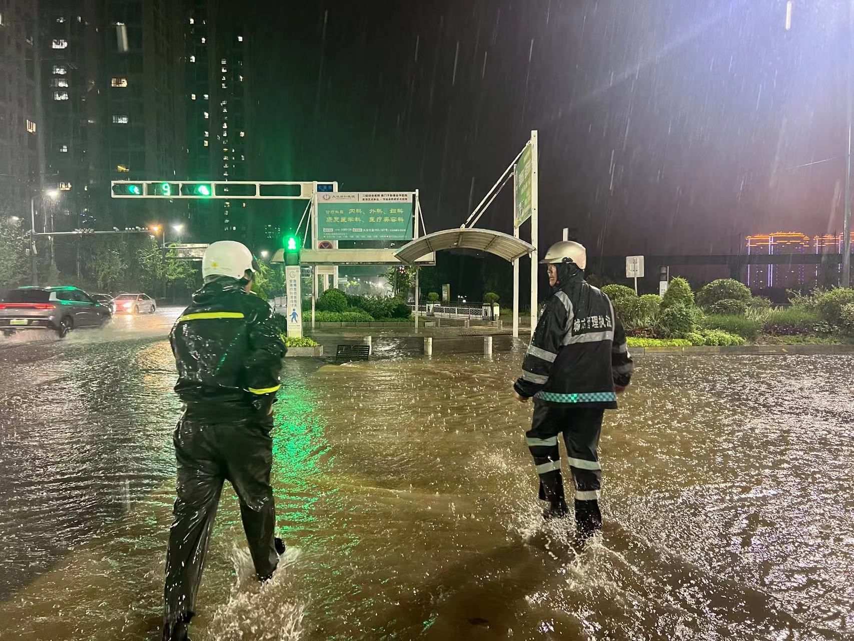 红莲湖乡针对全镇9个易涝点位,明确责任分工,确保在出现汛情时能够迅速有效地处置。出动城管队员134人次,对集镇路面积水进行疏解。在未来三路全力疏通排水管道,加快积水排放速度。