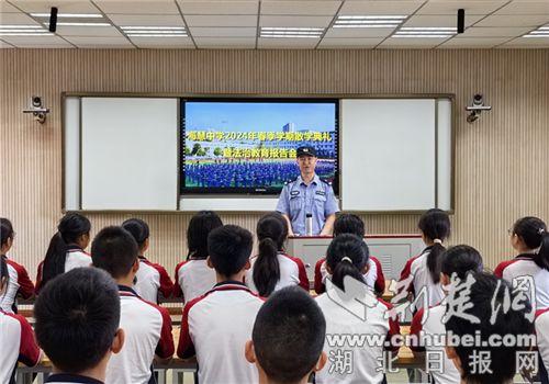 荆楚网(湖北日报网)讯(通讯员 贺林辉)暑期将至,为做好学生放假前安全教育工作,有效预防各类事故的发生。7月2日上午,荆门市公安局巡特警支队海慧警务站走进海慧中学开展暑期法治安全教育宣传活动,以宣促防,上好假期前“最后一课”,为学生们的假期系好法治“安全带”。