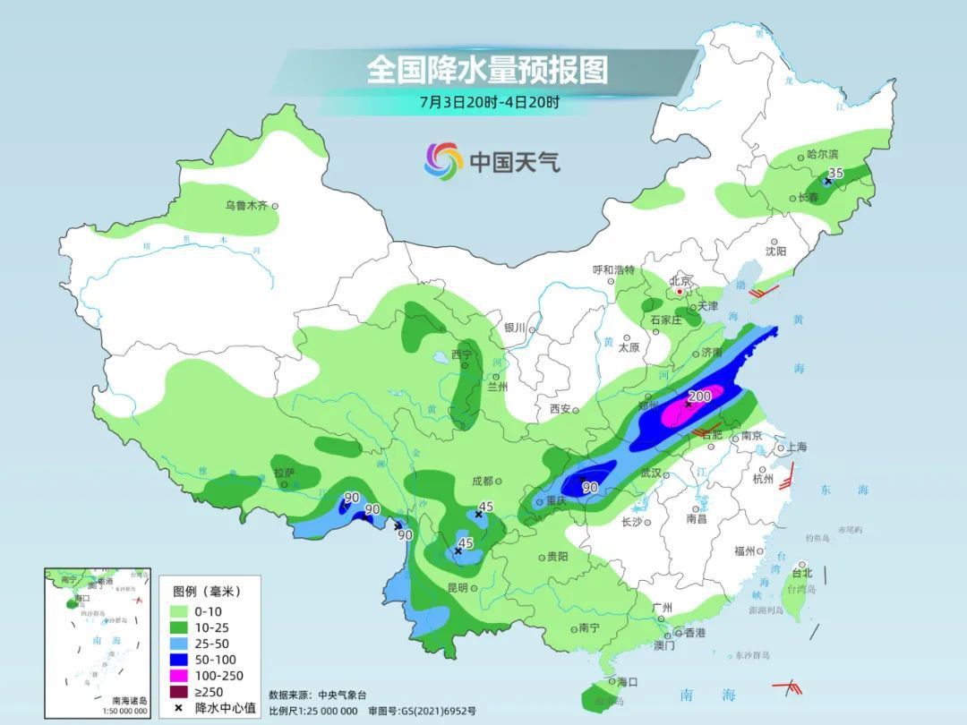 预计今天夜间至6日,受副热带高压北侧的偏南气流和低层切变线影响,主雨带将北抬至黄淮等地。