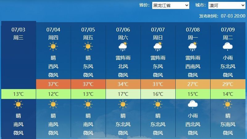 相比江南、华南的闷热,“鸡冠”一带的高温主要是干热型,而且更是“热”出圈,尤其是具有“神州北极”之称的黑龙江漠河。今天,漠河迎来了当地今年首个高温日,也是今年以来国家气象站位置最偏北的高温。