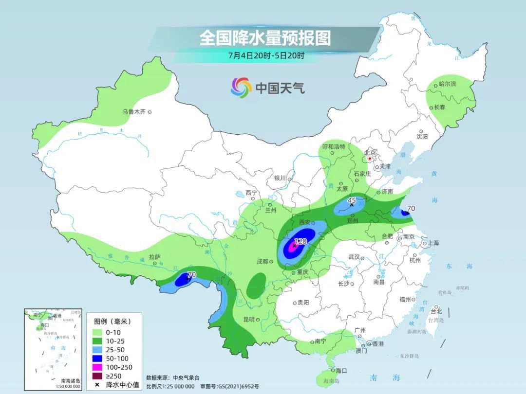 中央气象台预计,今天夜间至6日,四川东部、重庆、湖北西部、河南东部和南部、山东中南部、苏皖北部以及云南中西部和北部、西藏南部等地将出现大雨或暴雨,部分地区有大暴雨,局地有雷暴大风等强对流天气。