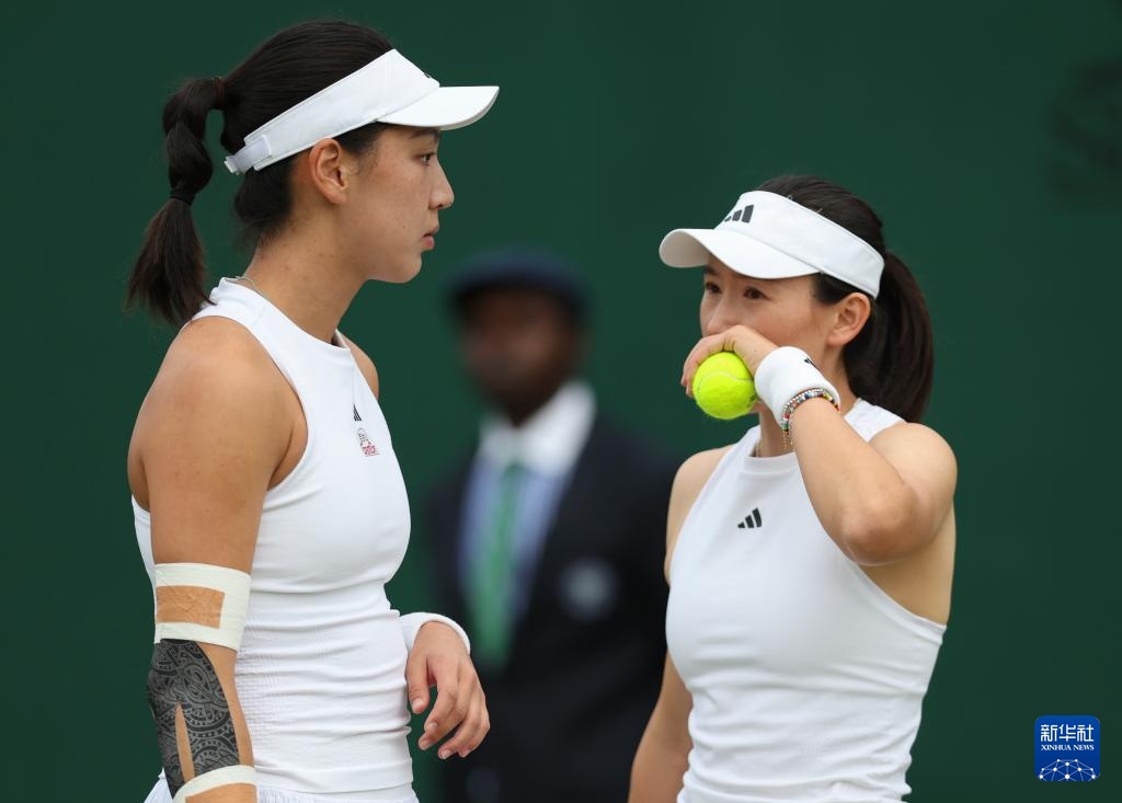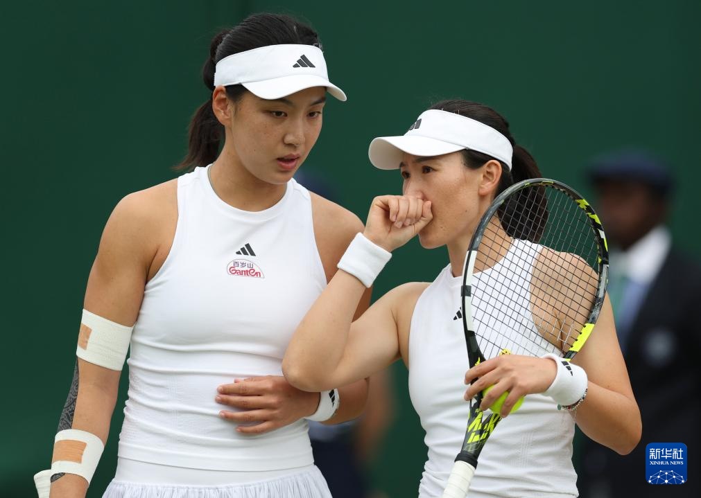 7月3日,王欣瑜(左)/郑赛赛在比赛中交流。新华社记者 韩岩 摄