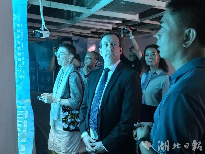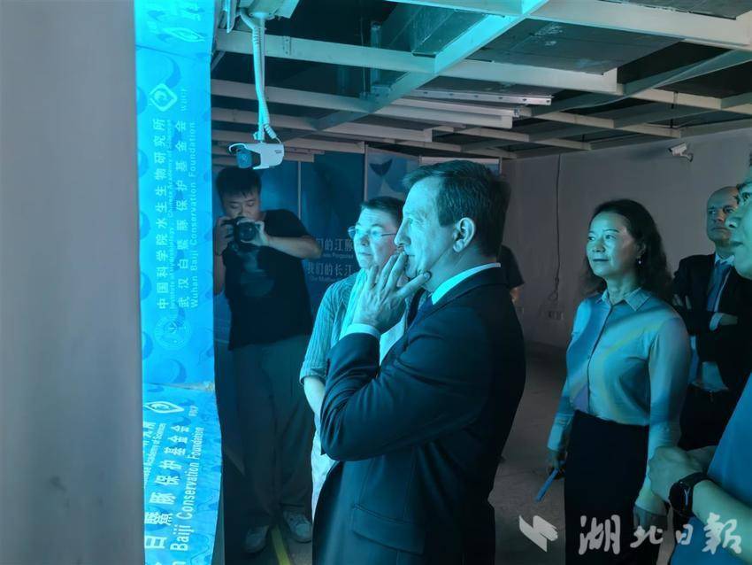7月3日,法国驻华大使白玉堂与德国驻华大使傅融共同访问武汉。当天下午,大使一行来到中国科学院水生生物研究所官桥园区的白鱀豚馆。看到十几头“微笑天使”在水中畅游,白玉堂和傅融都拿起手机,记录这难忘的一刻。