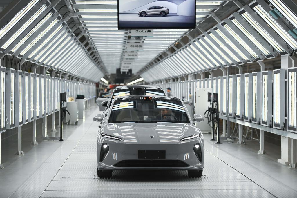 这是在安徽省合肥市新桥智能电动汽车产业园蔚来第二工厂拍摄的新能源汽车生产线(5月9日摄)。新华社记者 张端 摄