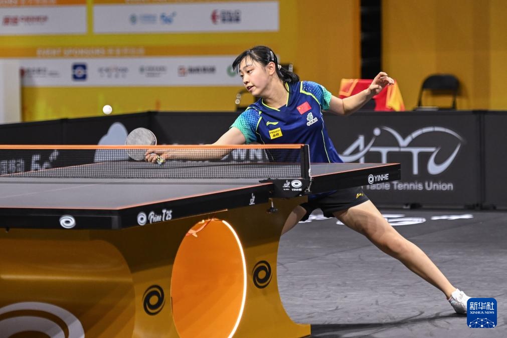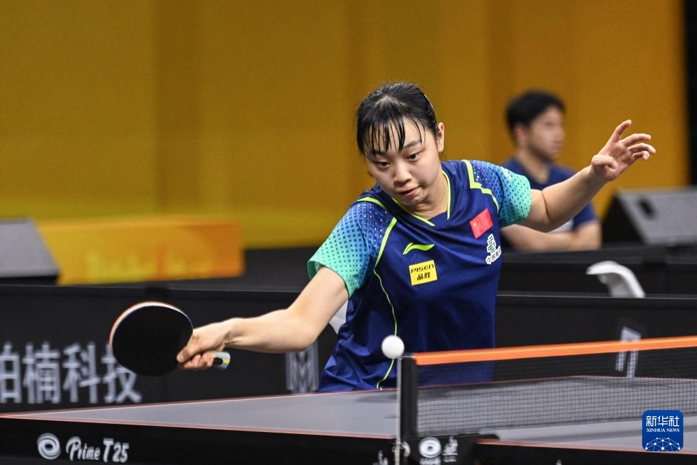 7月5日,胡一在比赛中回球。新华社记者 张子彧 摄