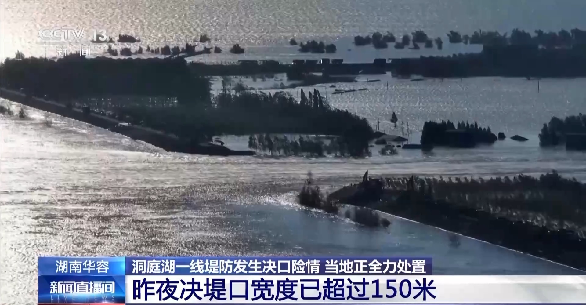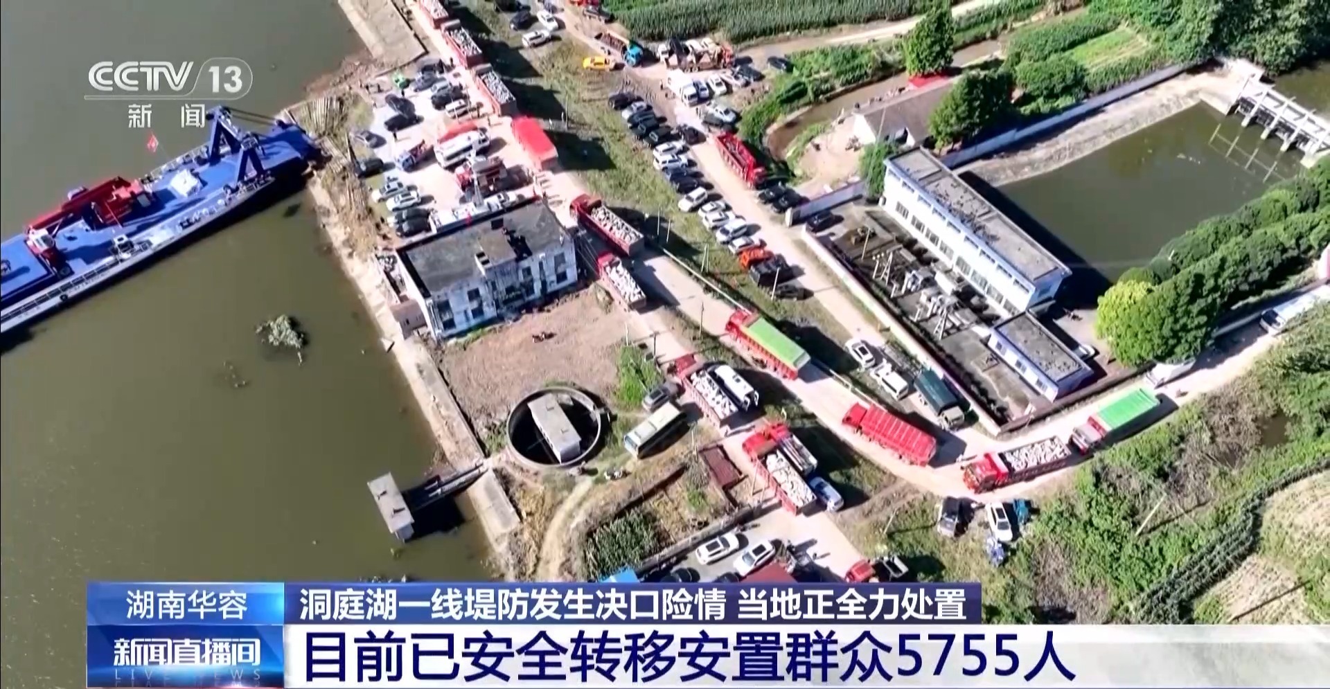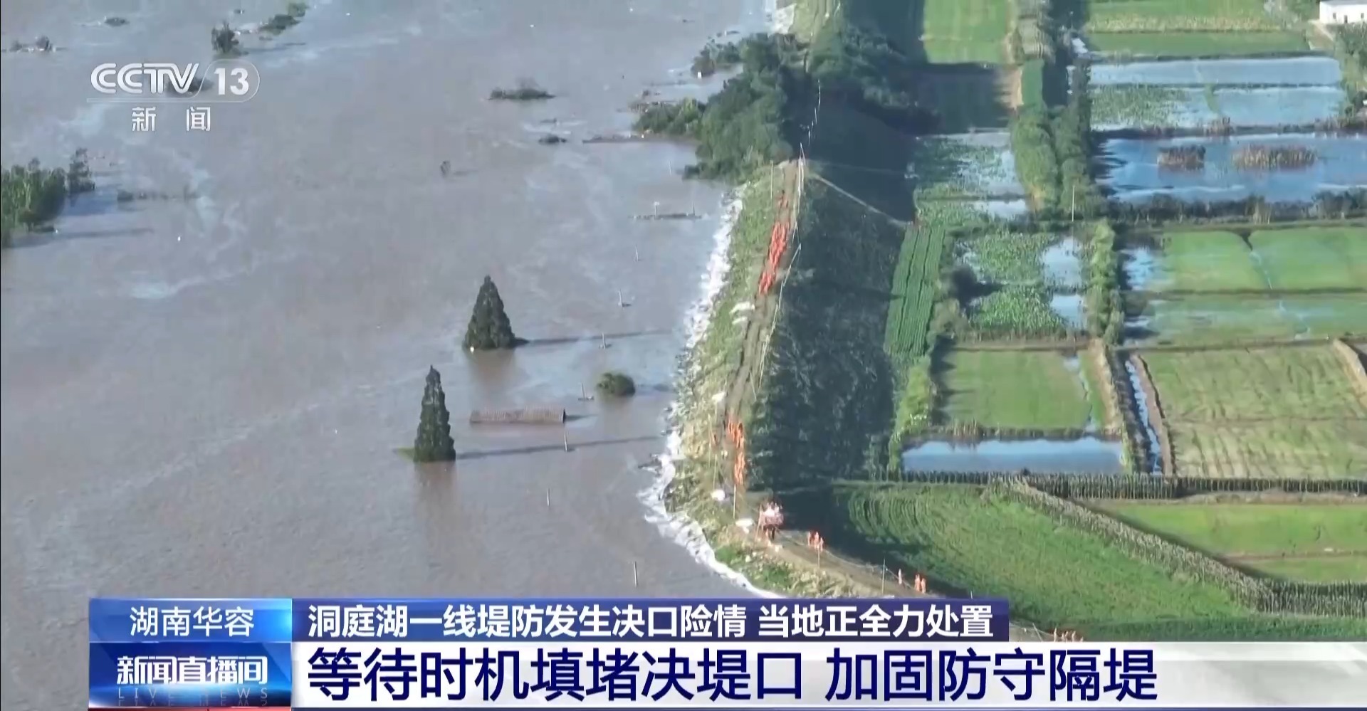 总台记者 尧遥:我身后就是洞庭湖和出现险情的堤坝。出于安全考虑,以及要给抢险救援车辆让出通道,这里是我们直播车能抵达的、距离决口险情最近的地方。