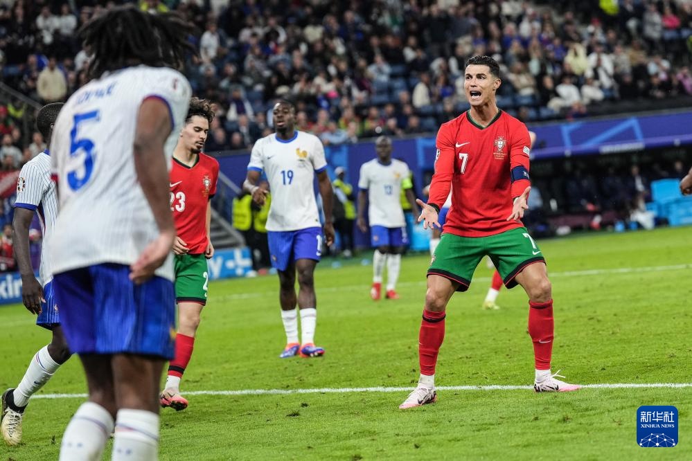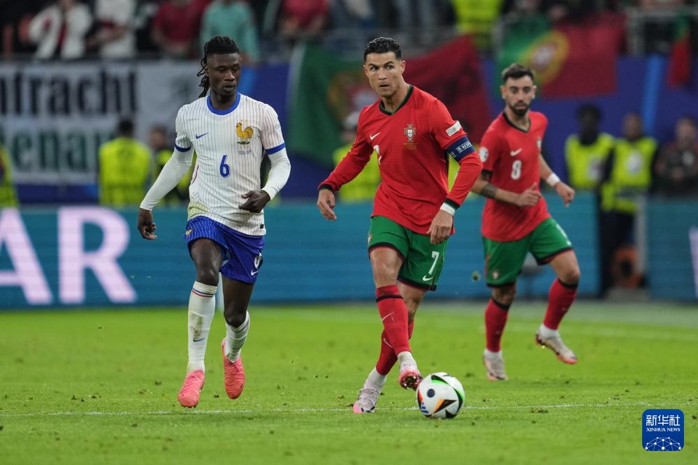 7月5日,葡萄牙队球员克·罗纳尔多(右)在比赛中。新华社记者 潘昱龙 摄