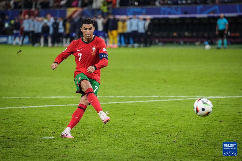 7月5日,葡萄牙队球员克·罗纳尔多在点球大战中主罚点球命中。新华社记者 潘昱龙 摄