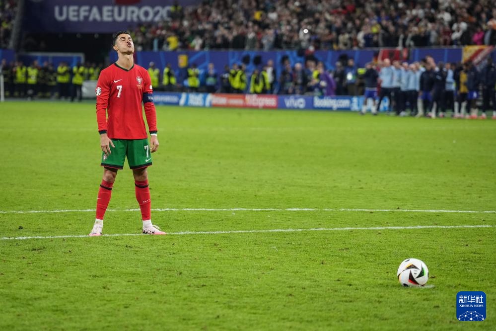 7月5日,葡萄牙队球员克·罗纳尔多在点球大战中准备罚点球。新华社记者 潘昱龙 摄