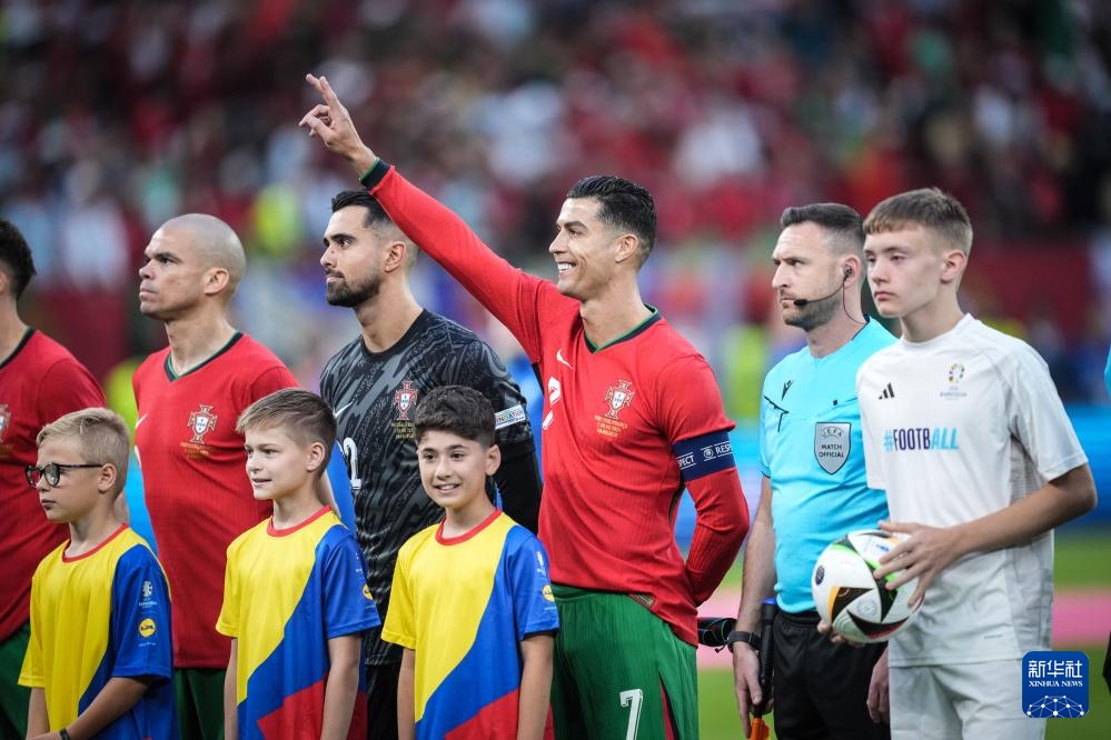 7月5日,葡萄牙队球员克·罗纳尔多(中)在入场仪式上。新华社记者 潘昱龙 摄