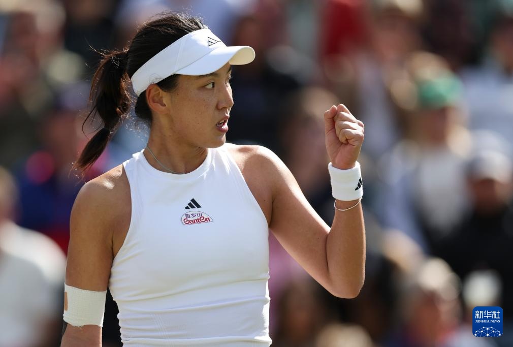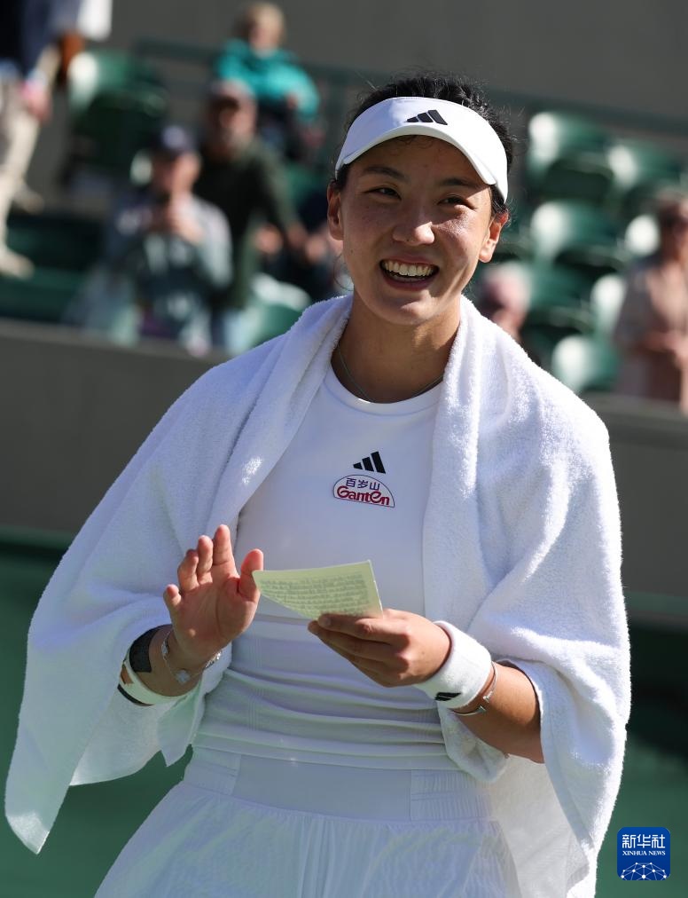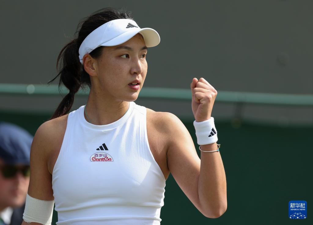 7月6日,王欣瑜庆祝比赛胜利。新华社记者 韩岩 摄