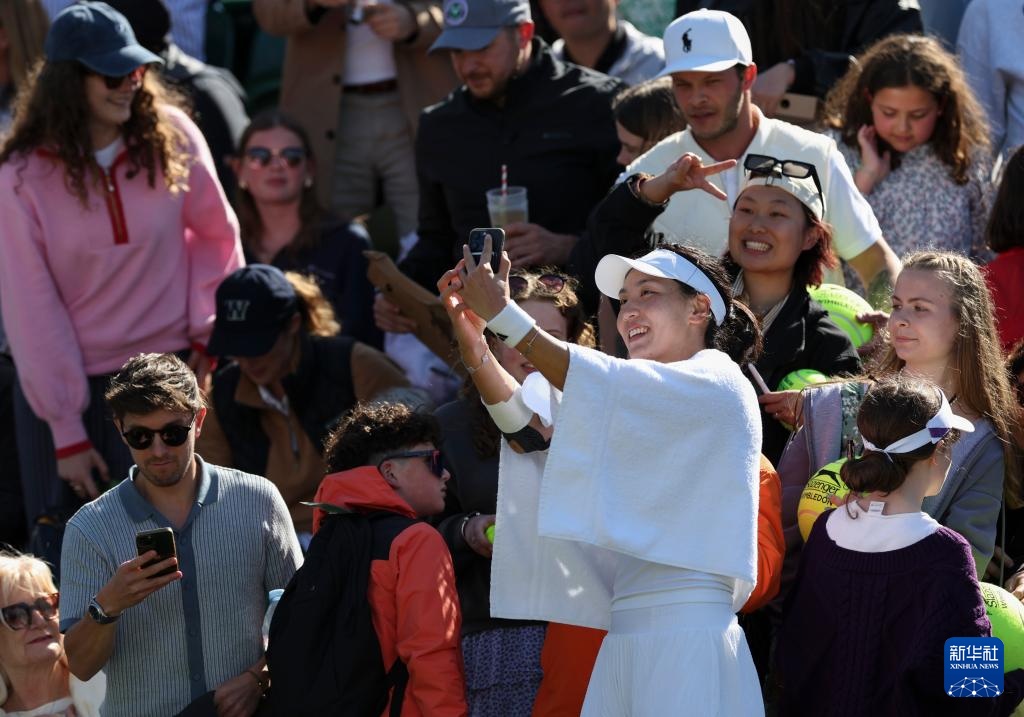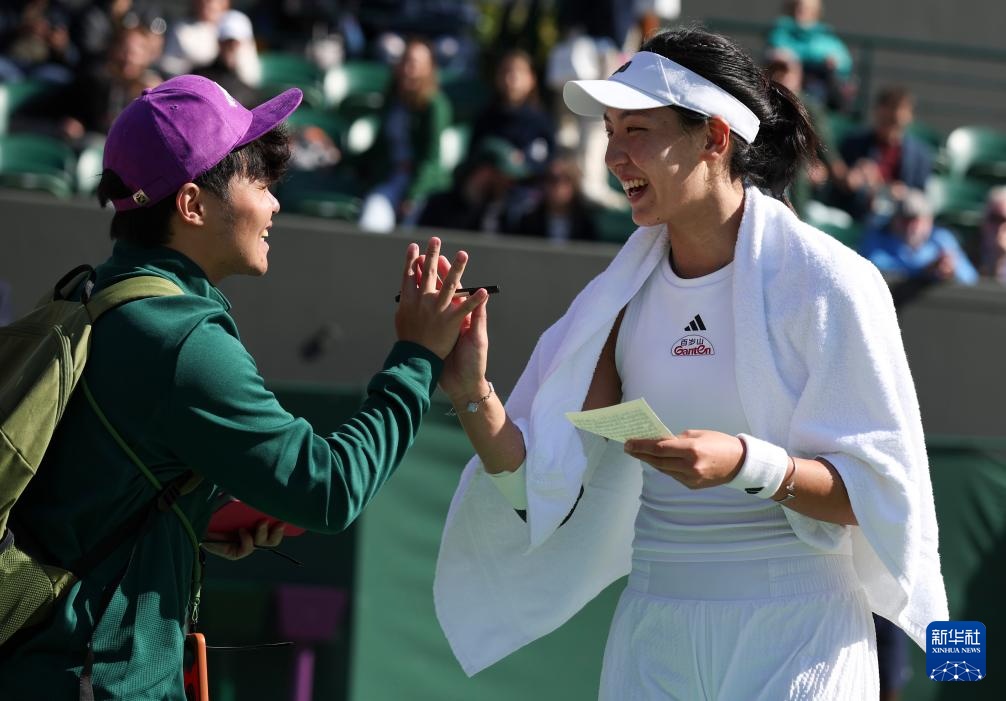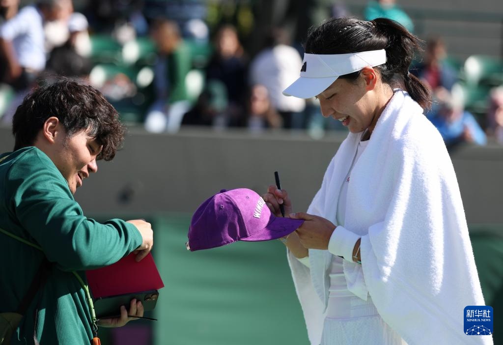 7月6日,王欣瑜赛后为球迷签名。新华社记者 韩岩 摄