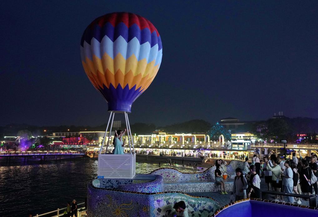 7月5日,游客在河北省秦皇岛市北戴河区碧螺塔酒吧公园游览。