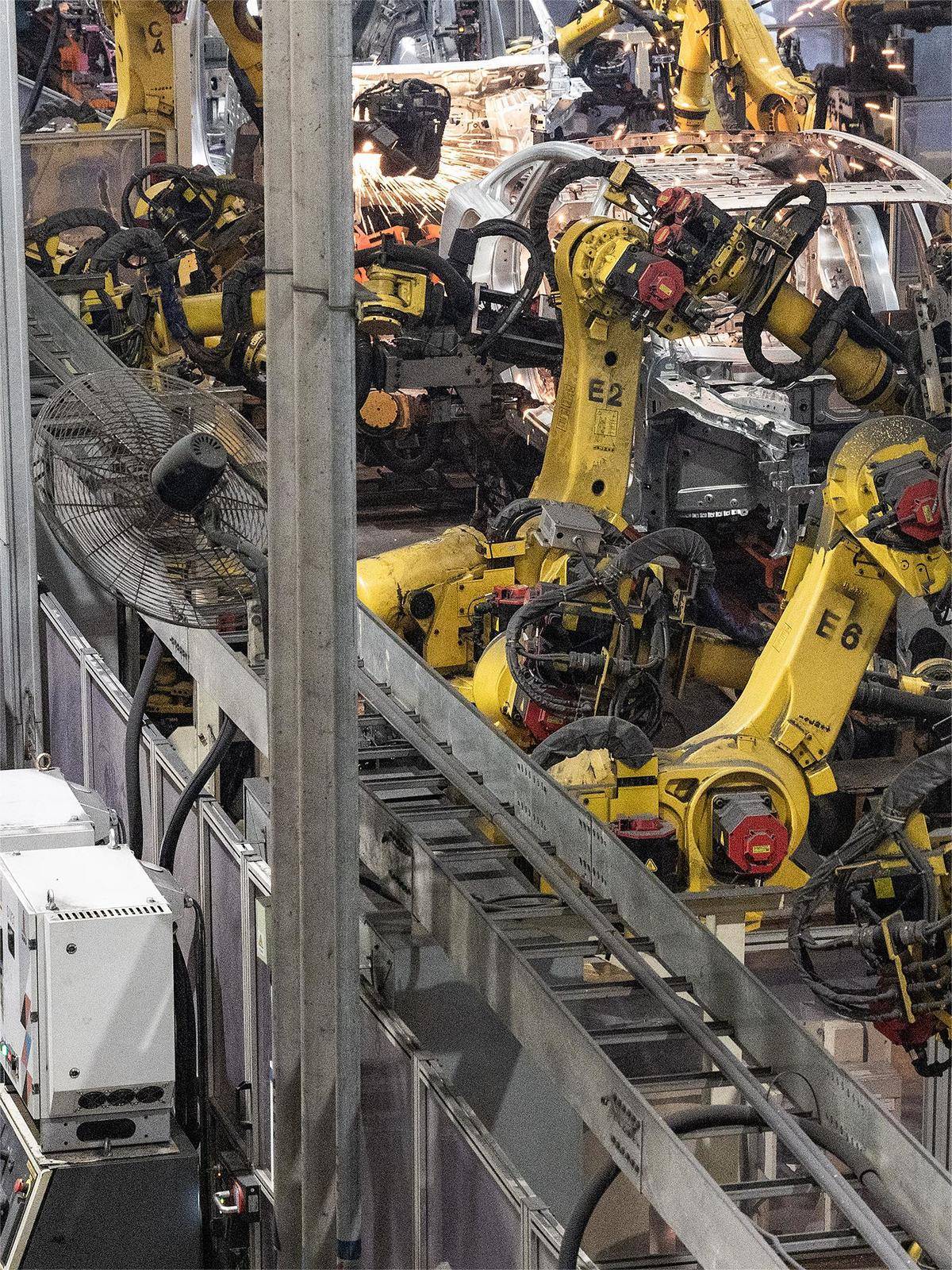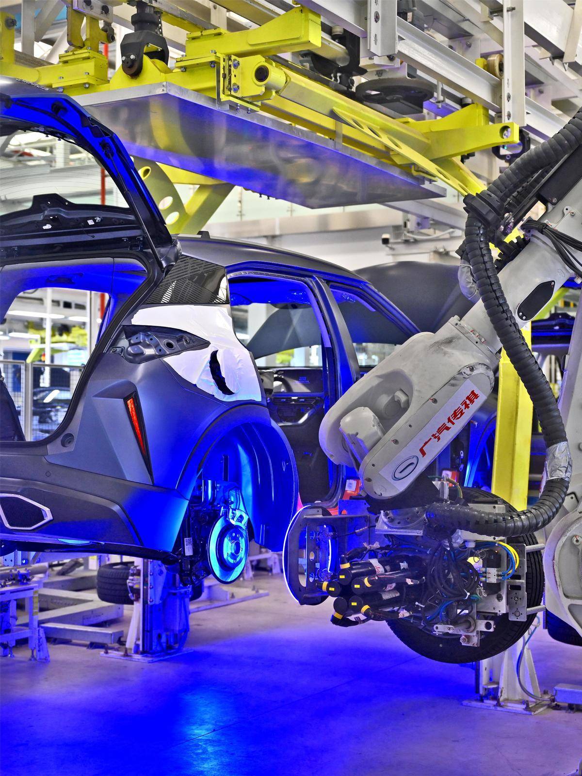 4月10日,广汽传祺宜昌基地,550多台机器人正有序协作、高速运转,产能已进入加速状态,日产量近500台。企业1700多名员工正铆足干劲、加紧生产。今年,企业不仅要在产销上创新高,还将竞速新赛道,实现新能源汽车“宜昌造”的目标。(湖北日报全媒记者刘曙松 通讯员 谭雪姣 摄 )