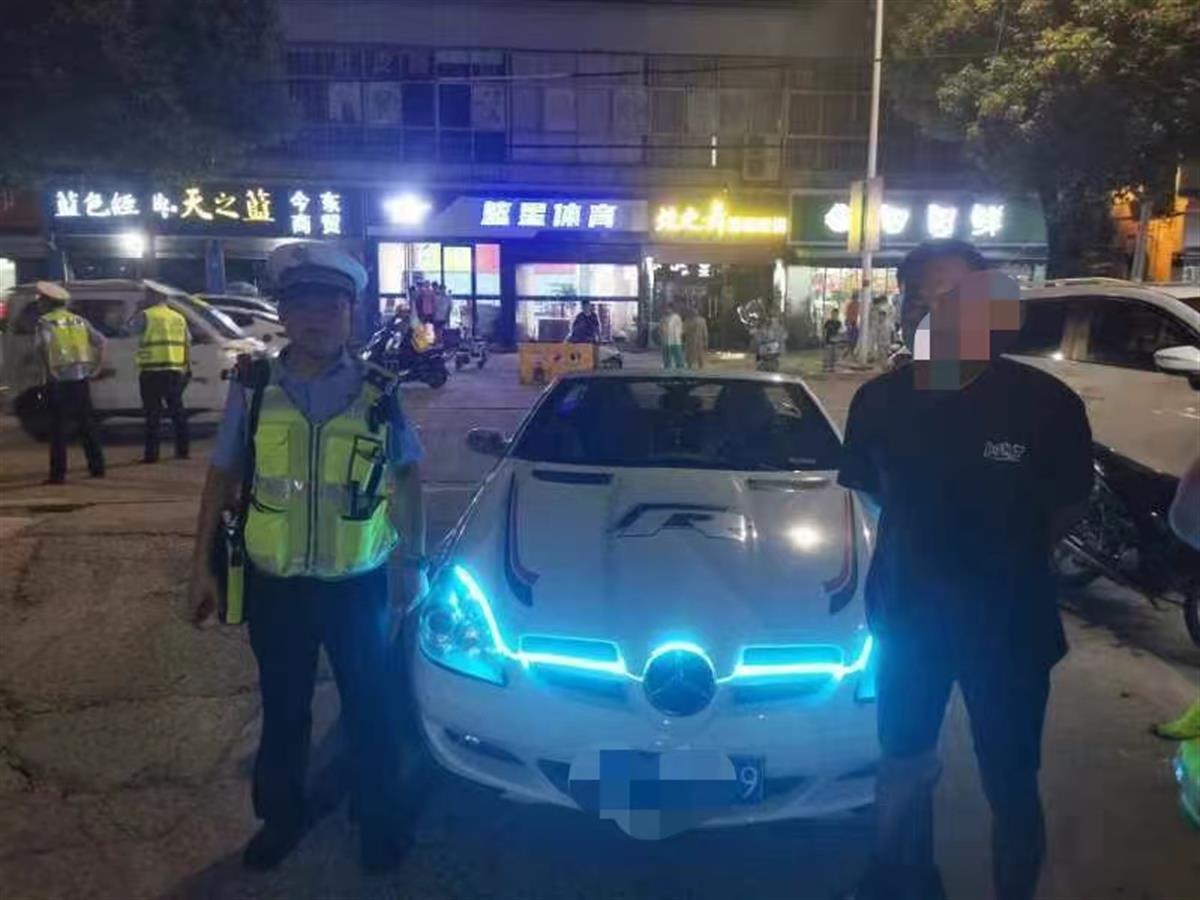 22时30分,江夏区交通大队二中队民警蒋仲超、王英钊,在杨桥湖大道光谷大道路口附近执勤时查处改装排气管的小型轿车和二轮摩托车各一起,分别对驾驶员处以罚款200元,并责令其拆除车辆非法改装部位零件,将车辆恢复原状。