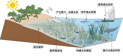 海草床生态系统示意图。 中国海洋大学供图 |