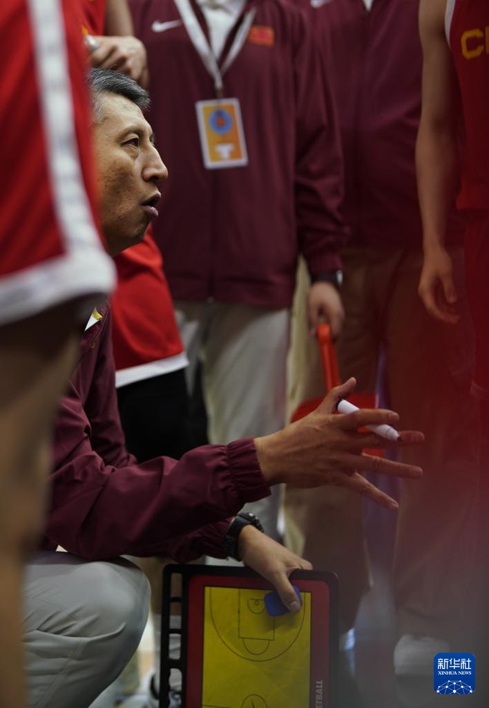 7月7日,中国队代理主教练郭士强在比赛间隙布置战术。新华社记者 吴晓凌 摄