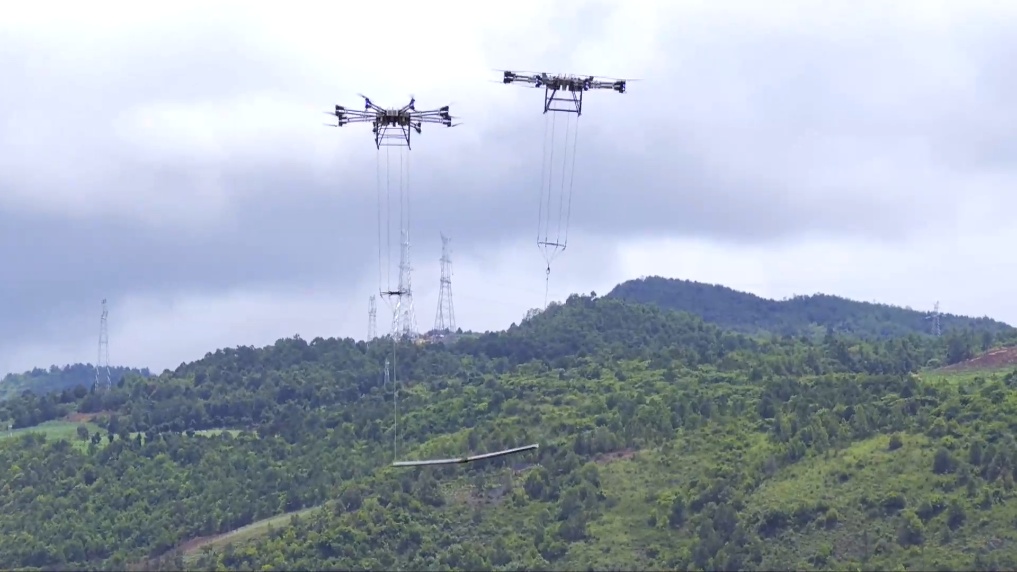 7月7日,在云南省玉溪市500千伏宁州变电站,两架重载无人机“双机联吊”将300公斤建材成功运送到海拔2000米左右的山顶。本次作业成功开展,突破了单架无人机载荷上限,为高海拔地区未来实现“三机联吊”“四机联吊”奠定了基础。