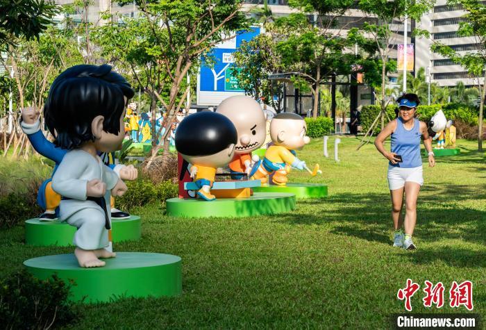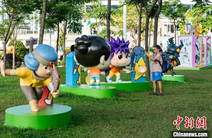 图为市民拍摄众多动漫体育雕塑。中新网记者 侯宇 摄