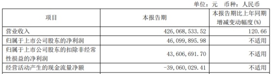 2024年第一季度,天岳先进实现营业收入4.26亿元,同比增长120.66%;归属于上市公司股东的净利润4609.99万元;归属于上市公司股东的扣除非经常性损益的净利润4360.67万元;经营活动产生的现金流量净额-3906.00万元。