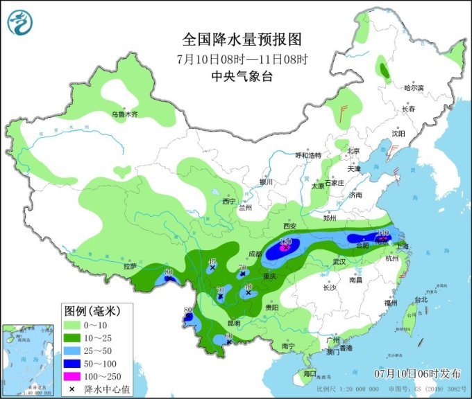 预计10日至13日,四川盆地、江淮、江汉等地的部分地区将有大到暴雨,局地大暴雨,部分地区伴有短时强降水、雷暴大风等强对流天气。中央气象台10日早晨继续发布暴雨黄色预警:预计未来24小时,四川盆地、重庆北部、陕西东南部、湖北西部和北部、河南东南部、安徽中部、江苏中南部等地有大到暴雨,四川盆地东北部、江苏西南部等地局地有大暴雨(100~140毫米)。