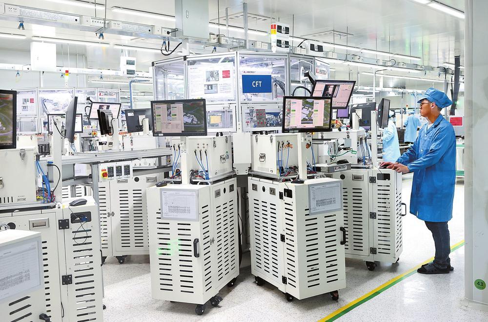 位于昆明高新区马金铺片区的闻泰昆明智能制造产业园内,工作人员争分夺秒完成客户订单。记者 周灿 摄