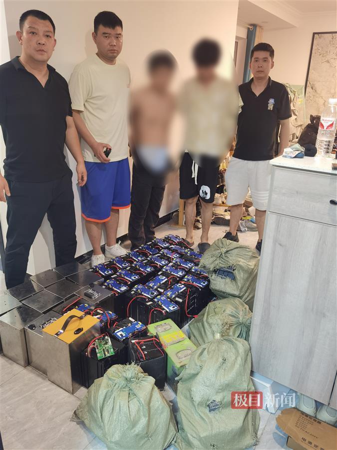当晚,民警朱博带领快反队队员马不停蹄地来到该小区走访,并获取了其租住房间的地址。7月2日凌晨1时,民警破门而入,将犯罪嫌疑人刘某、宋某抓获。在房间内,民警发现了大量三元锂电池电芯和控制电路、外壳。这些电池的数量远远超过了报案数量。