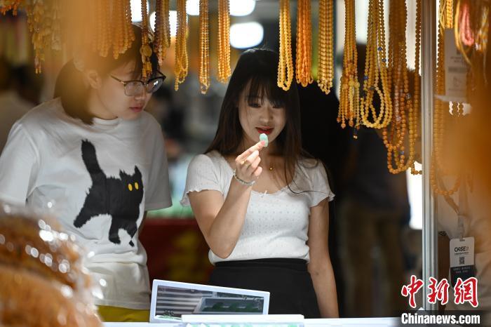 7月11日,参观者挑选玛瑙。当日,2024中国昆明国际石博览会暨云南国际珠宝玉石展开幕,本届石博会围绕“珠宝玉石、赏石文化、非遗工艺”三大核心板块,设置国际品牌珠宝馆、时尚首饰馆、玉石翡翠馆、奇石馆、工艺美术馆。中新社记者 李嘉娴 摄