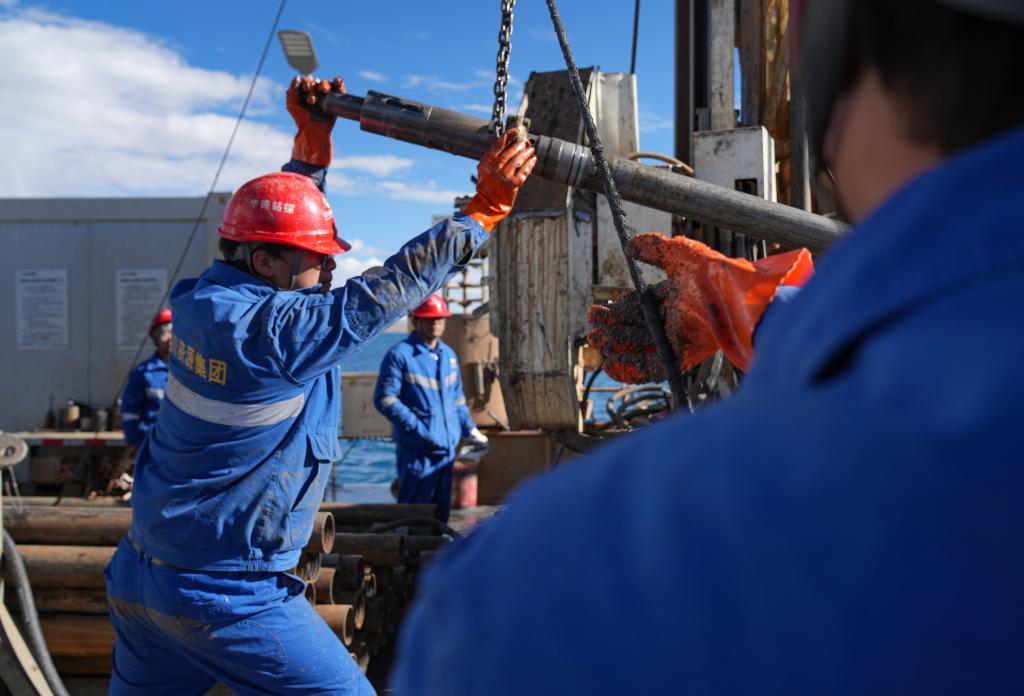 新华社拉萨7月11日电(记者田金文、刘洲鹏、邱星翔)“3!2!1!机器,起!”在海拔超过4700米的西藏纳木错,湖泊岩芯钻探工作正在如火如荼地开展。