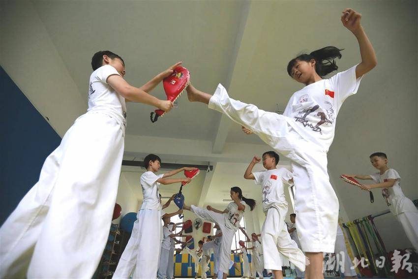 “台上一分钟,台下十年功。要想学好舞蹈、跆拳道,就要学会吃苦。下腰、劈叉、倒立、空翻……这些基本功,每天都要坚持训练。”7月10日,在湖北省竹山县宝丰镇红果果艺术培训中心,放暑假的孩子们在专业老师的耐心指导下练习舞蹈和跆拳道基本功。
