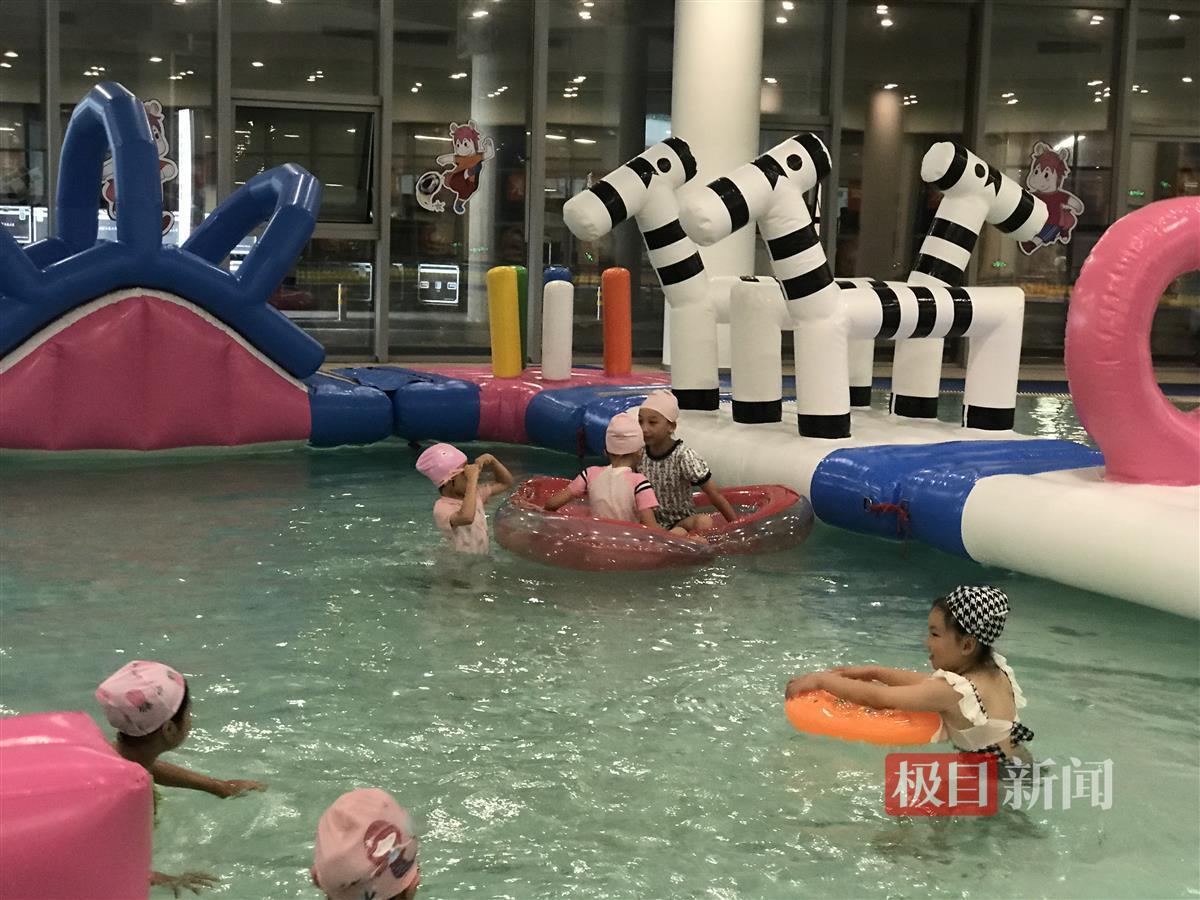 武汉五环体育中心游泳馆负责人程莉告诉记者,泳池分为浅水区、深水区等不同区域,他们在0.8米的浅水区内放置了一些充气水上游乐设施,供小朋友们嬉水,这些设施一般在下午场开放,十分受小朋友欢迎。为了保障小朋友安全,该区域配备了救生员巡逻,时刻看护小朋友。记者看到,为了照顾孩子们的安全,设施旁边均有救生员来回巡逻,提醒小朋友注意安全。8岁的陈文煊表示,他每天在水上乐园玩2个小时,直到玩累了才回家。
