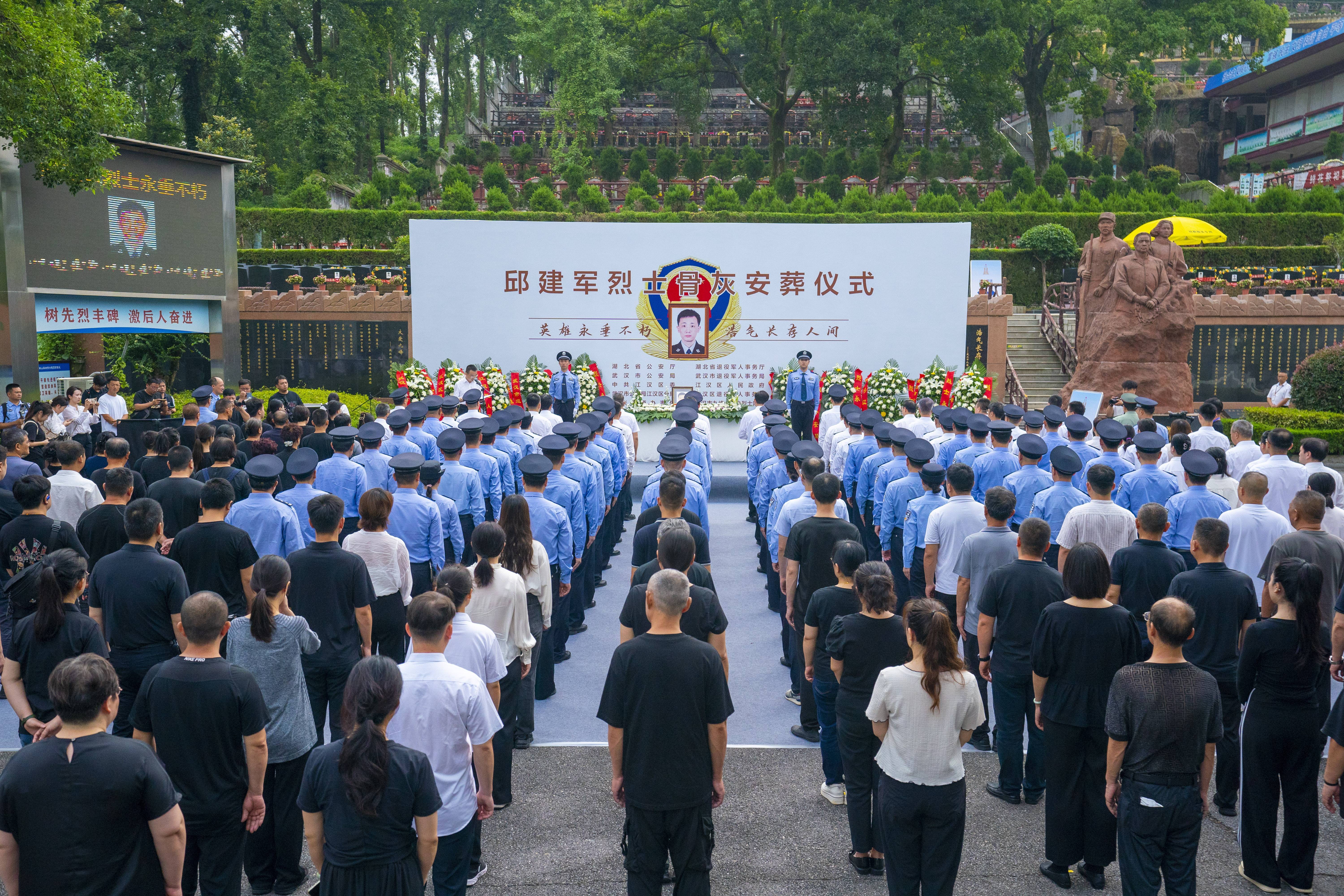 “安息吧,建军!你这一生对得起这身警服!”7月11日上午,武汉市九峰山革命烈士陵园,邱建军的妻子陆英轻抚烈士墓碑,泣不成声。