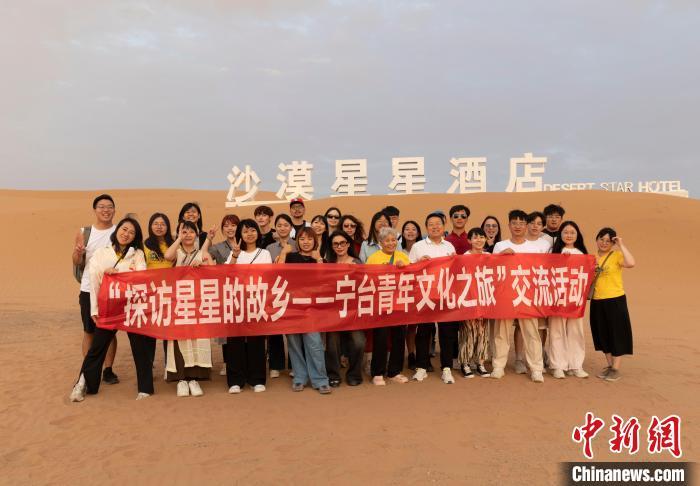 7月11日,宁夏沙坡头国家级自然保护区,台湾青年及工作人员在沙漠星星酒店合影留念。7月7日至13日,由宁夏台办主办的“探访星星的故乡——宁台青年文化之旅”交流活动在当地举行,20余名台湾青年参访宁夏。中新社记者 杨迪 摄