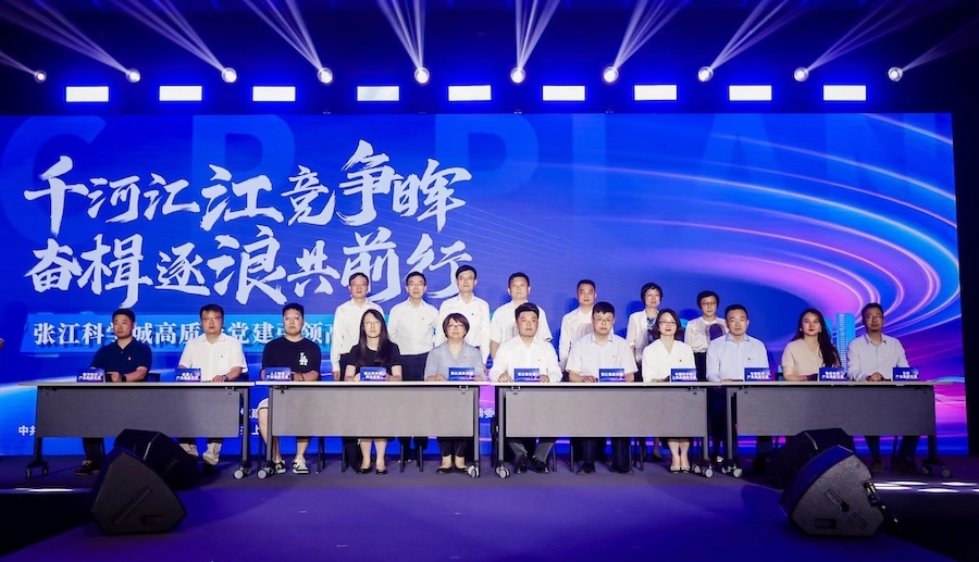 立足上海科创策源地定位,“五个张江”蓄势扩容科学城产业集群党建联盟,打造更为包容的产业“生态圈”。现场,张江科学城六大产业集群党建联盟成员单位代表、张江镇、张江集团、张江高科、张江科学城综合党委、区域化单位中国科学院上海高研院等单位代表以区域化党建为纽带同台签约,为科创生态注入“源”头活水,积极探索党建赋能产业形成联合体,推动创新链产业链资金链人才链深度融合,加快构建起“热带雨林”式的产业生态,促进“生物医药产业集群”“集成电路产业集群”“人工智能产业集群”“机器人产业集群”“数字经济产业集群”“文创产业集群”六大产业集群逐“新”提“质”,推动更好实现张江科学城在新征程上取得更高质量的发展。