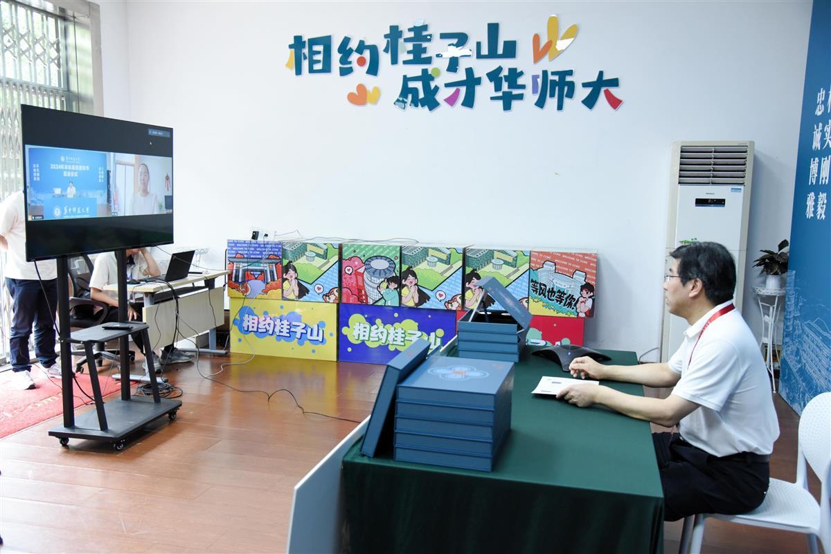 “祝贺你!这是我们签发的第一份录取通知书。”签发仪式现场,彭双阶在录取通知书内页上郑重签名,并与山东日照的秦钰同学进行了视频连线,为秦钰和她的家长送上祝贺。