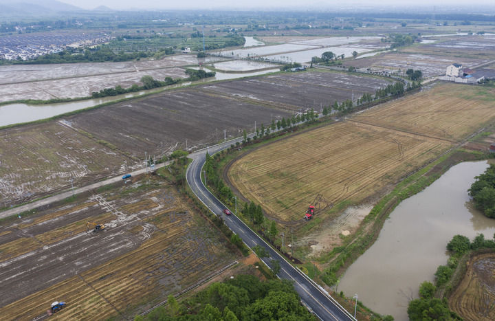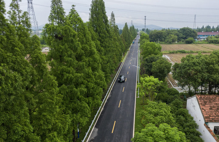 在浙江省诸暨市赵家镇上京村拍摄的改造提升后的县道(2024年6月4日摄,无人机照片)。新华社记者 徐昱 摄
