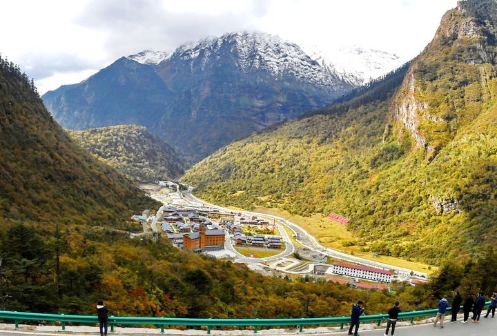 游客在西藏山南市隆子县玉麦乡路边欣赏玉麦乡美景(2023年10月25日摄)。新华社记者 张汝锋 摄
