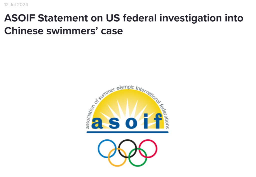 12日,夏奥协在声明中表示,美国此次联邦调查和就涉及中国游泳运动员的反兴奋剂事件向世界泳联执行主任发出传票,有可能破坏WADA和普遍适用的《世界反兴奋剂条例》的基本原则。