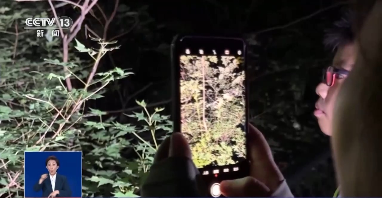 香山公园宣传科科长 绪银平:在夜间来到香山公园,肯定是会看到一些在白天大家看不到的生物,在近距离观察这些生物的过程中,也倡导大家珍惜自然、爱护自然。